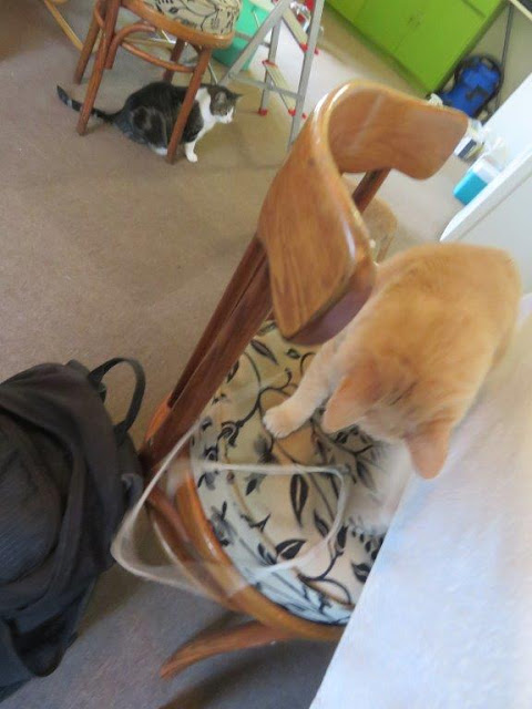 Then, because we have four cats, I'd grab a second one before it bolted (somehow they just KNOW), Grant would grip the scruff, body under his arm and I inject.